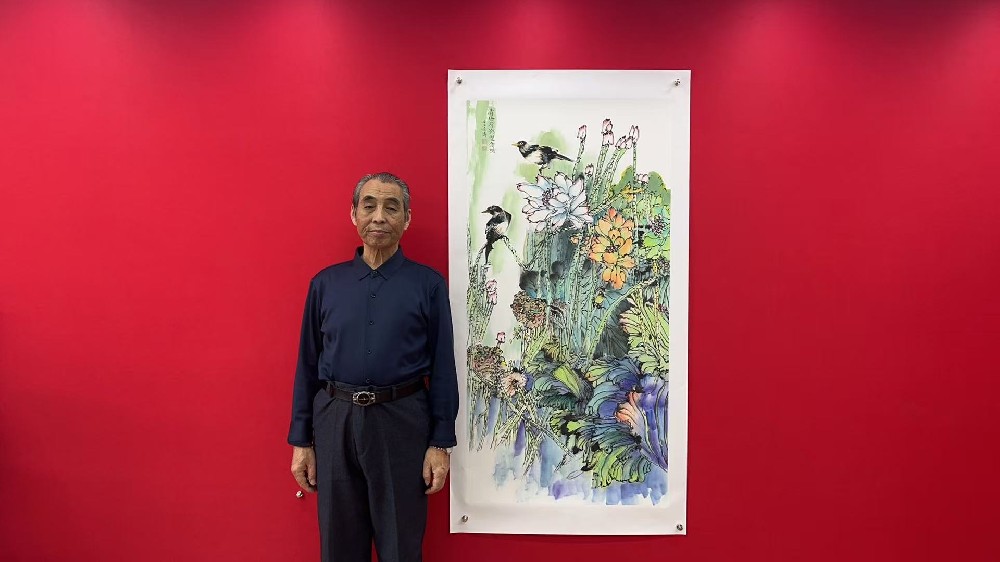 作品:清塘荷影双禽鸣