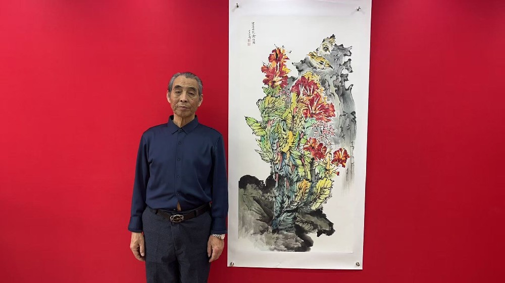 作品:墨石丹花禽自闲