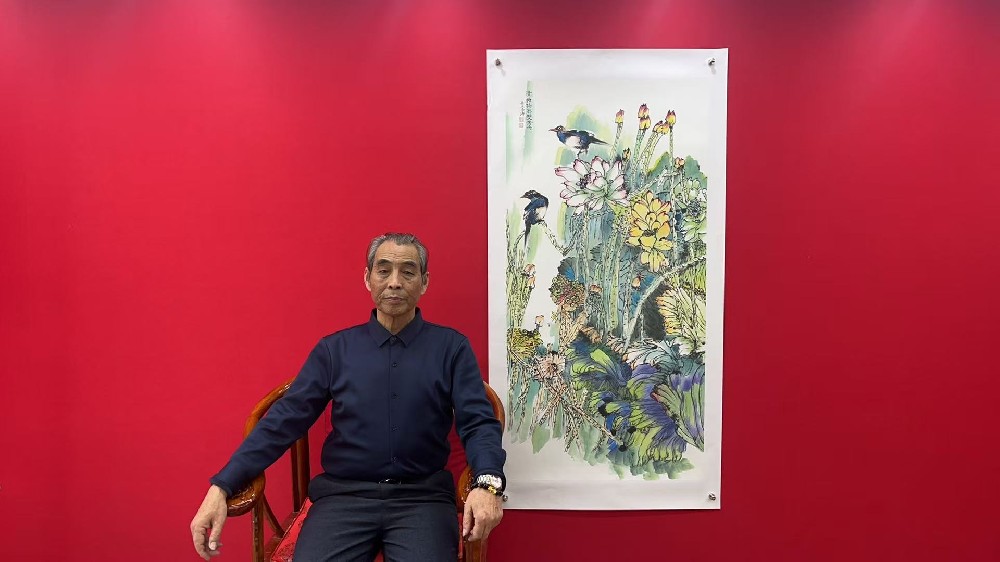 作品:清塘荷影双禽鸣